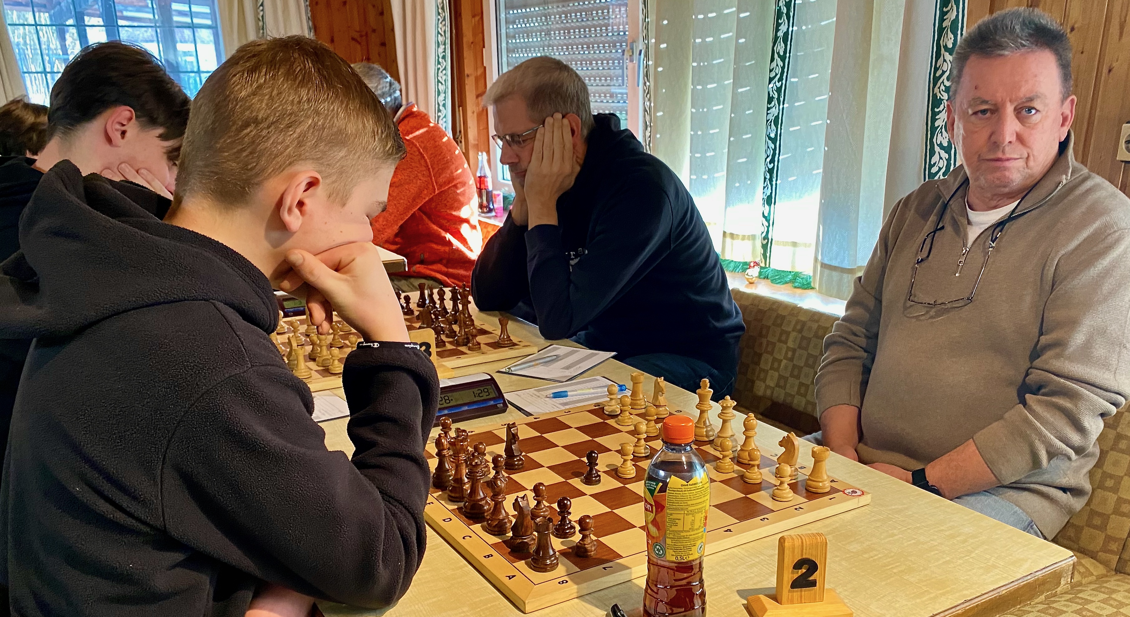 Den Ausgleich musste am Spitzenbrett Gerhard Raatz nach zwei Bauernverlusten im Mittelspiel gegen Heinz Schwierzy zulassen, in dieser Partie war der Hagener nach DWZ haushoher Favorit gewesen. Am 2. Brett erkämpfte Ingrid Hermaneck gegen Wolfgang Deinert ein Remis. So stand es 1,5:1,5, und zu diesem Zeitpunkt sah es für den Gast noch sehr ordentlich aus.