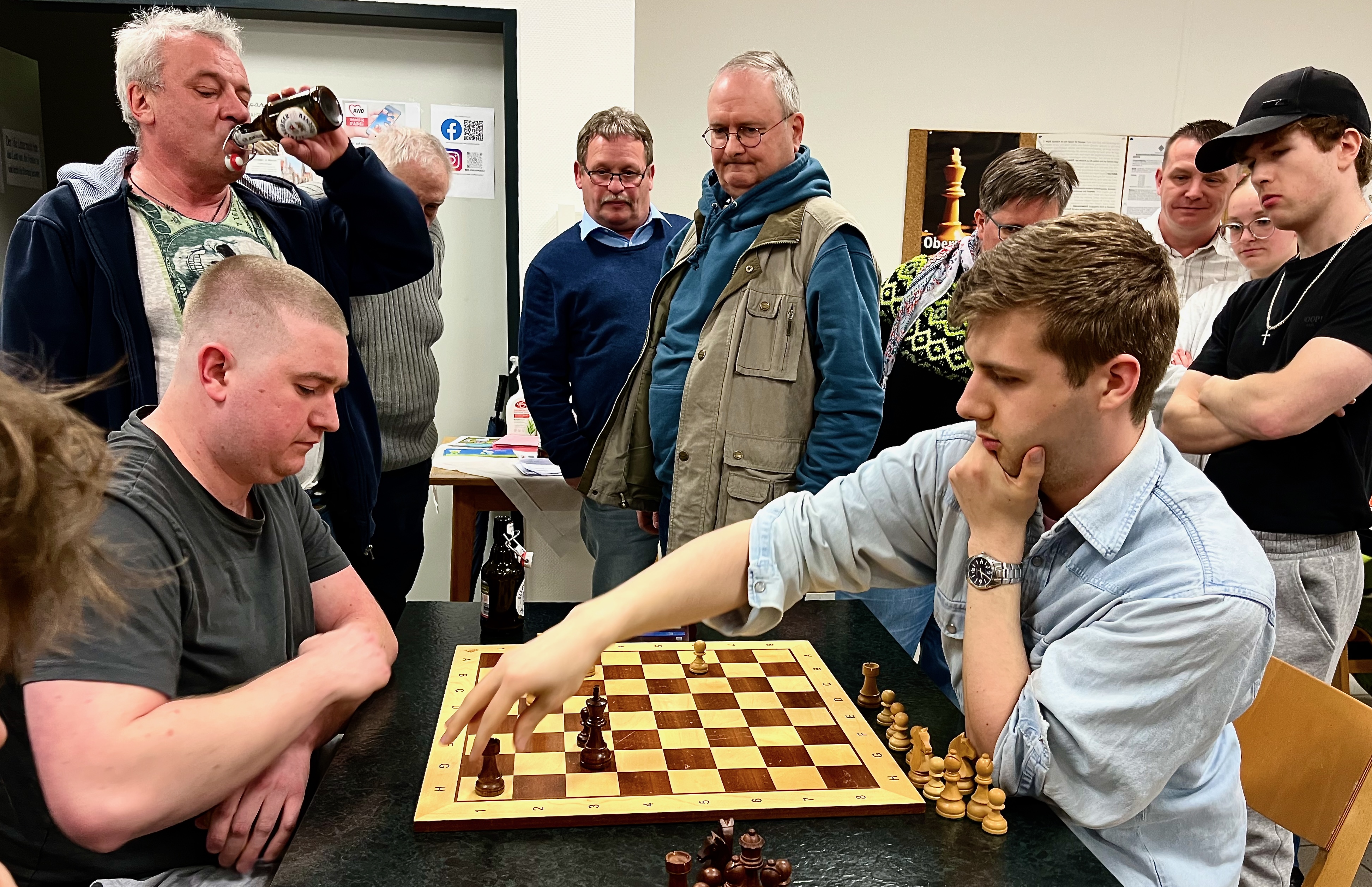 Die erste Entscheidung fiel am 6. Brett. Hier hatte Martin zu Putlitz gegen Marius Cramer eine Qualität gewonnen. Er entschied die Partie für sich. Mario Rieger (3) musste aber anschließend gegen Stefan Kleine den Ausgleich zulassen. Nach einem Remis von Thomas Orlik gegen Jens Klöckener nach einer lange unklaren Stellung stand es damit 1,5:1,5.