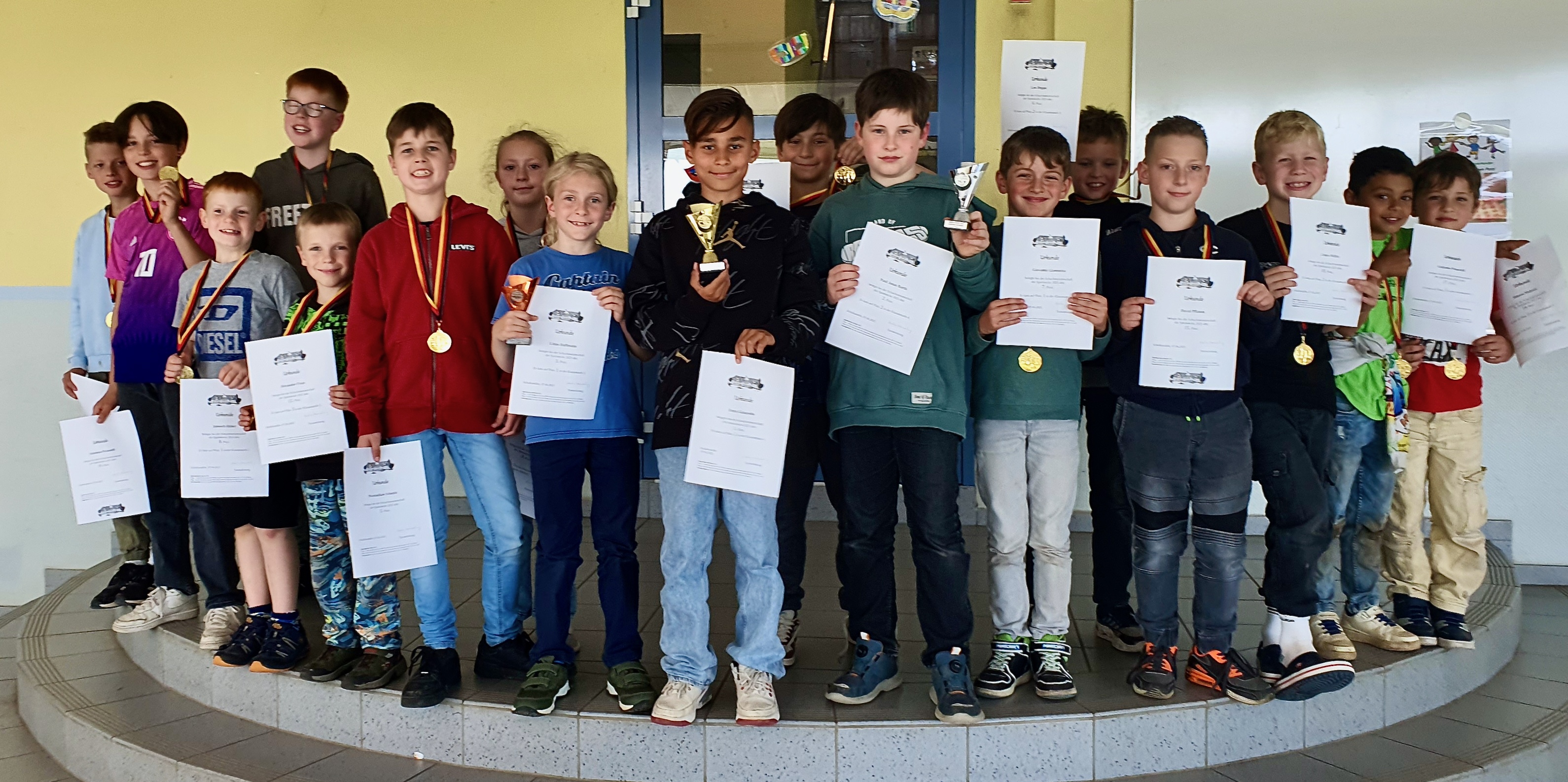 Für fünf Kinder war es das erste Schachturnier überhaupt. Der achtplatzierte Janosch Hüber (2. Klasse) war beim Turnier erst das zweite Mal in der AG. Dass ein Erstklässler (Giovanni Giannetta) Platz sieben belegte, war auch durchaus überraschend. Dass unter den ersten Fünf des Turniers vier Spieler aus der 4. Klasse kamen, zeigte indes auch an, dass für die Schulmannschaft, die sich in diesem Jahr bis auf NRW-Ebene sehr gut schlag, ein Umbruch ansteht. Am Ende des Turniers gab es für die drei Erstplatzierten Pokale und für alle Teilnehmer Medaillen. Das Turnier war der Höhepunkt des Schuljahres für die Schach-AG.